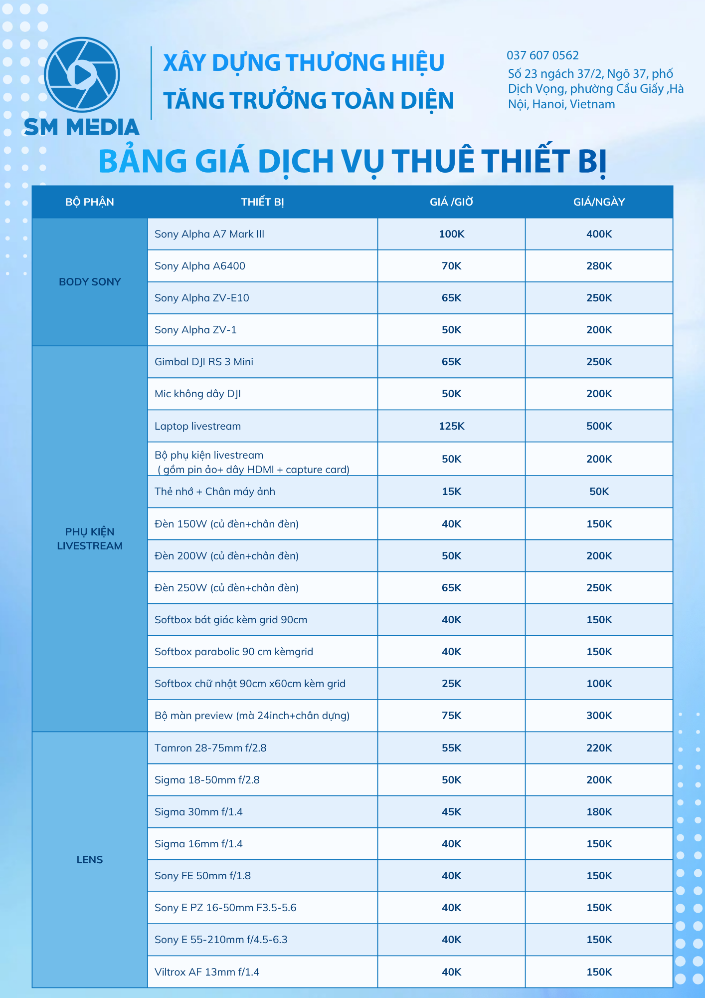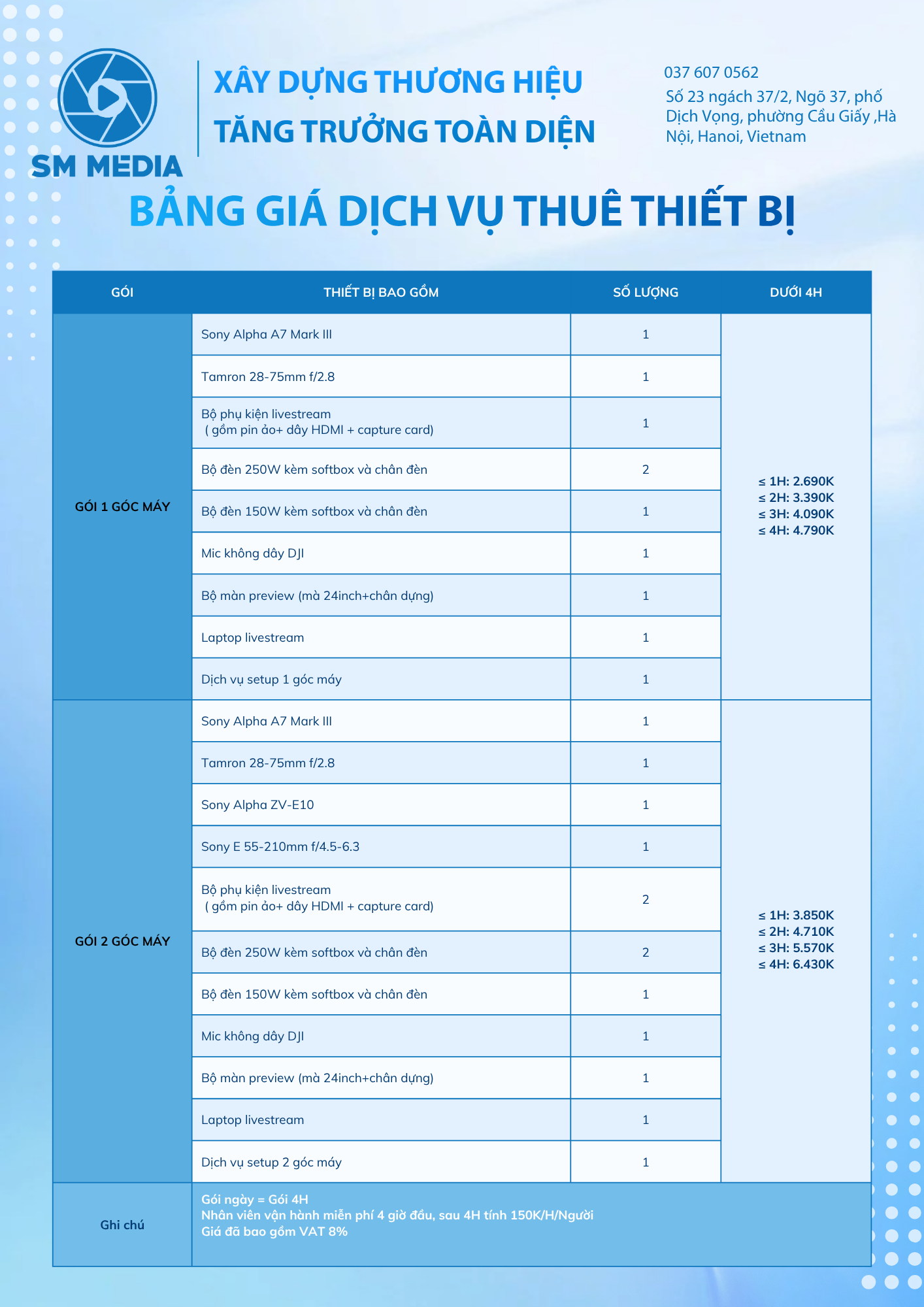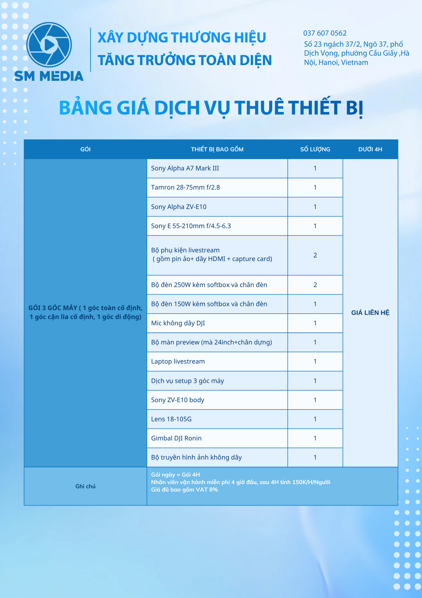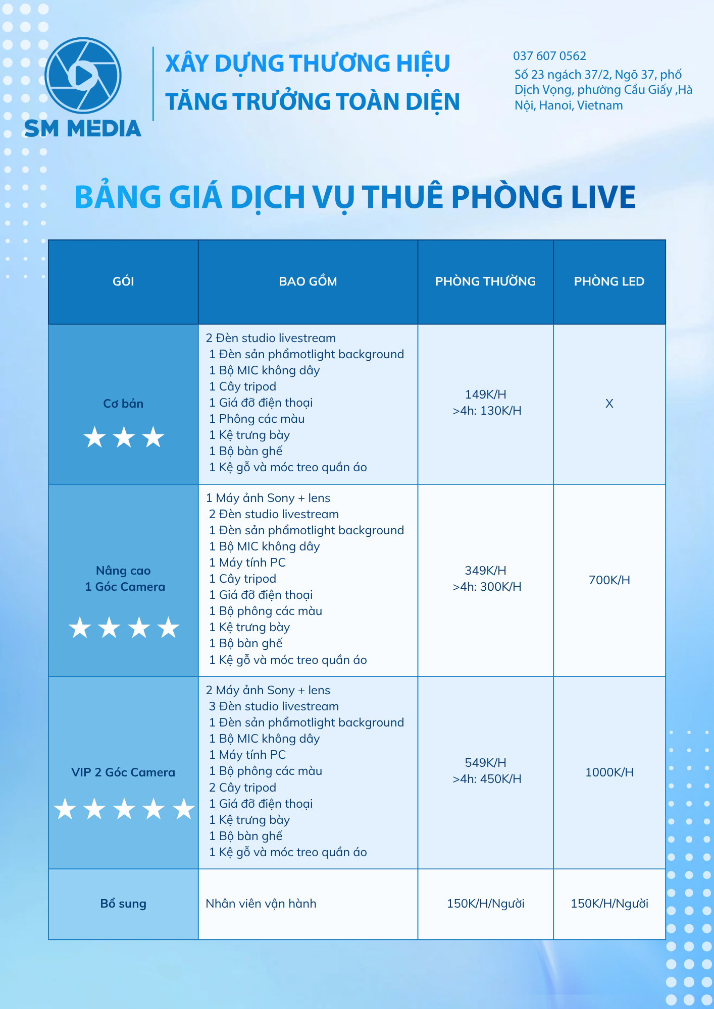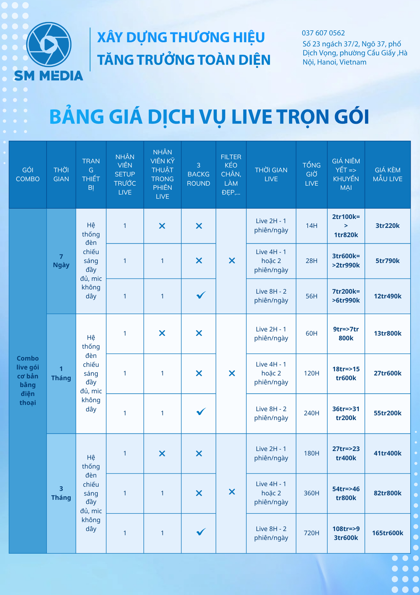 Là agency truyền thông tích hợp, SM Media cung cấp hệ sinh thái dịch vụ từ Digital Marketing, Media Production, Livestream – Studio Setup đến E-Commerce. Doanh nghiệp chỉ cần một đối tác duy nhất để triển khai trọn vẹn chiến lược, đảm bảo tính nhất quán về thông điệp, hình ảnh và trải nghiệm thương hiệu.